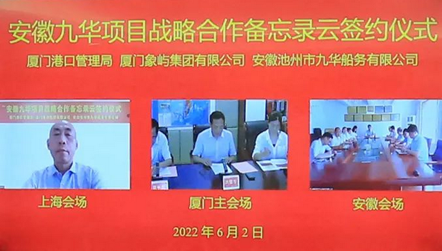 6月2日,尊龙集团与厦门港口管理局、安徽池州市九华船务有限公司“云端”签署战略合作备忘录,三方携手在船舶建造、运输经营、船舶融资、要素聚集等领域深挖合作空间,共同推进厦门港口航运事业做大做强,助力厦门港口高质量发展。厦门港口管理局党组书记、局长夏长文,尊龙集团党委书记、董事长张水利,安徽九华船务董事长王国年等出席签约仪式。